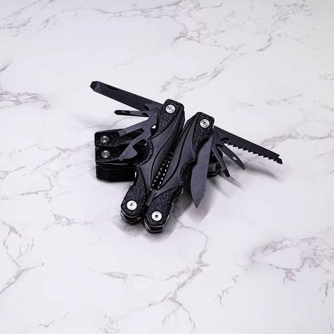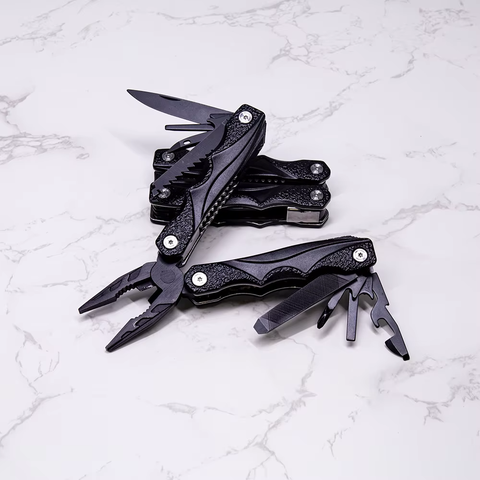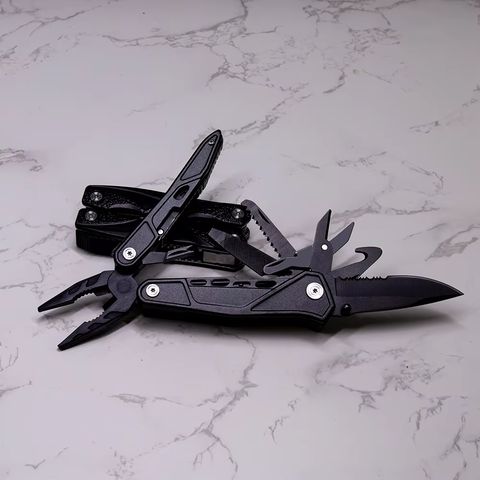 재고 다기능 핸들 도구 조합 플라이어 미터법 톱니 형 턱 블랙 코팅 야외 DIY OEM 멀티 툴